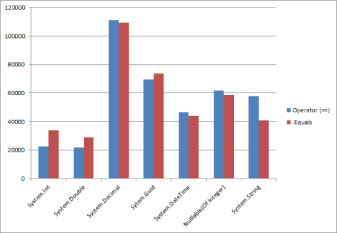 The intention of this post is NOT to suggest any particular method for performing equality check but just to show some interesting data related to performance when equality check is done for some of the fundamental datatypes in .NET.